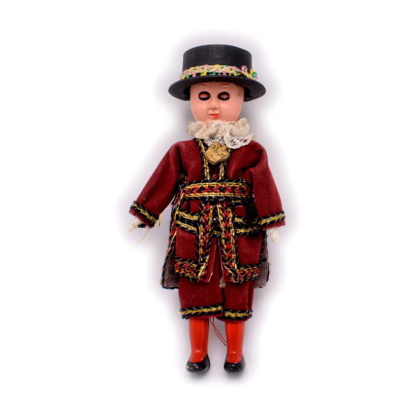 Кукла. Пластик, ткань. Размер 6×14 см. Дефекты: нет части шляпы