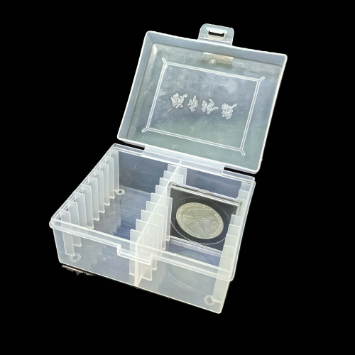 Бокс для хранения монет в квадрумах на 20 позиций. Новый в упаковке. Размер 111×90×55 мм. квадрум с монетой для примера на фото