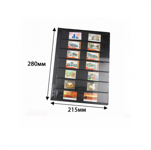 Комплект листов MINGT, двухсторонние с чёрной основой для банкнот, 7 ячейки, 10 штук, формат Vario. Новый в упаковке. ПЭТ. Размер 280×215 мм. Коллекци…