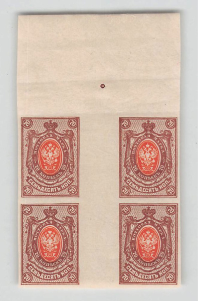 Квартблок почтовых марок 70 копеек. Люкс 1917 (Российская Империя)