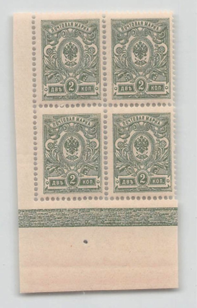 Квартблок почтовых марок 2 копейки. Люкс (Российская Империя)
