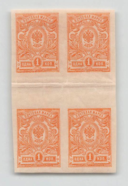 Квартблок почтовых марок 1 копейка. Люкс (Российская Империя)