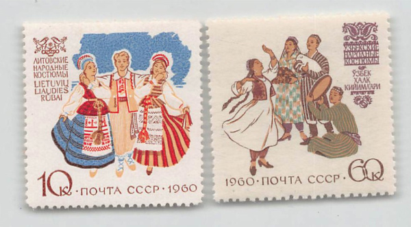 Лот почтовых марок «Сказки разных народов». 2 шт. Полная серия. Люкс 1960 (СССР)
