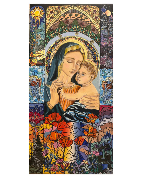 Картина «Эта жизнь вокруг» акрил, холст, поталь, торцы оформлены .150*50 см
