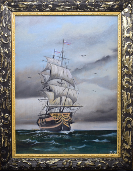 Картина «Старинный корабль». Автор: Галина Гусева. Масло. Размер 47×37 см. Холст на картоне