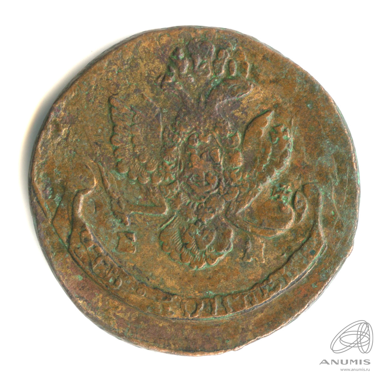 5 копеек — Вензель императрицы Екатерины II Великой. Орел 1780 г. Екатеринбург 1786 ЕМ