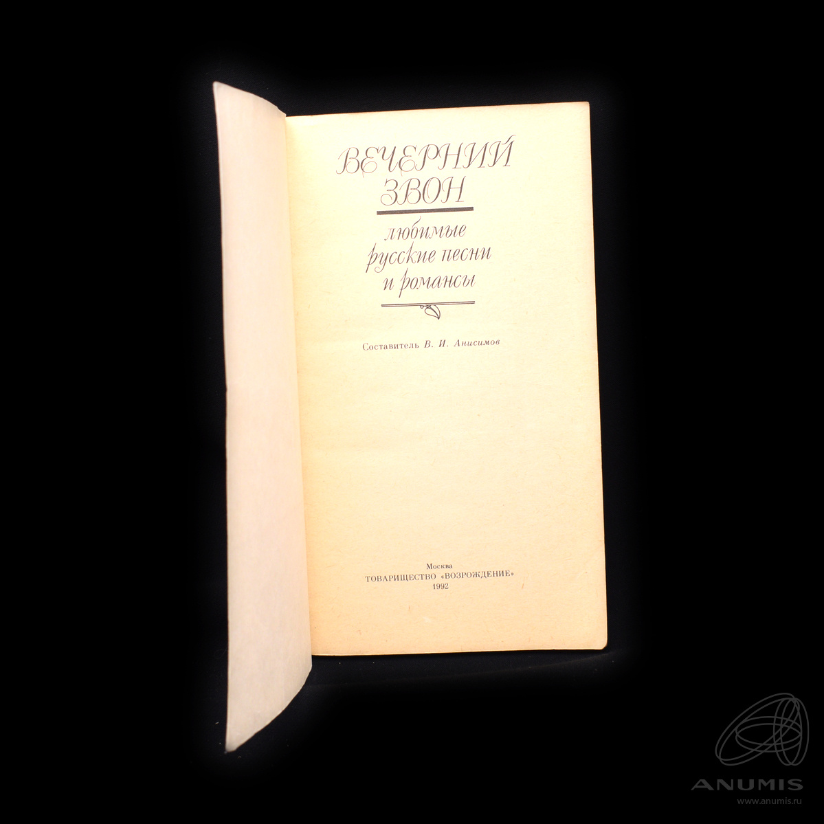 Книга «Вечерний звон. Любимые русские песни и романсы». Издательство «Возрождение», г. Москва. Автор: В. И. Анисимов. 123 стр. Тираж 50 000 экз