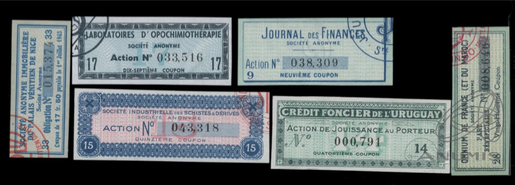 Лот купонов от акций. 6 шт