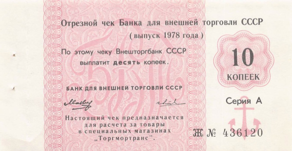 10 копеек. Отрезной чек 1978