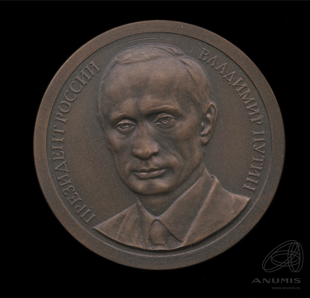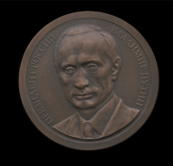 Медаль настольная «Президент России Владимир Владимирович Путин». ⌀ 5 см. Тяжелая. В коробке